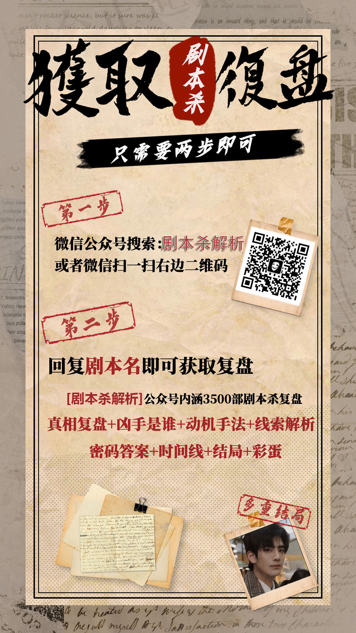 剧本杀 全部真相复盘+凶手是谁+手法动机+剧透解析+密码答案+结局时间线 合集大全1